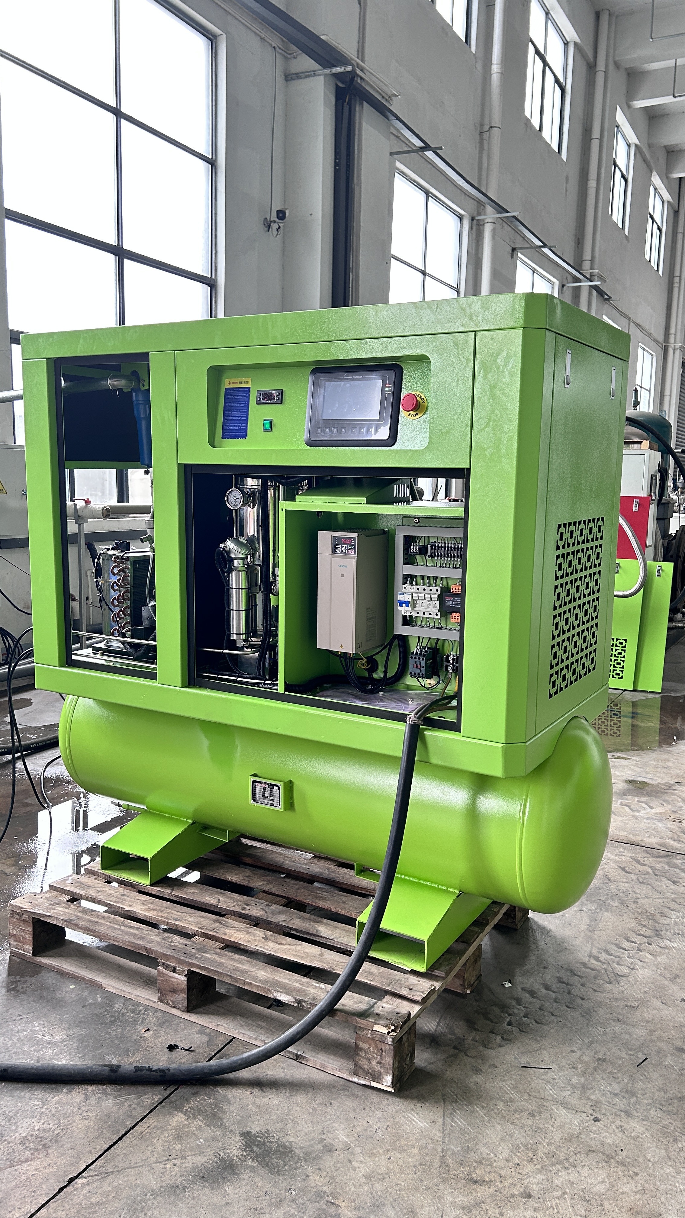 The integrated oil-free water-lubricated permanent magnet variable frequency screw air compressor with built-in aftertreatment system provides a complete compressed air solution in a single package. This all-in-one air-cooled compressor system eliminates the need for separate component installation and reduces overall footprint while delivering certified oil-free air for your critical applications. The permanent magnet VFD technology ensures maximum energy efficiency, while the integrated refrigerant dryer, air receiver, and filtration system guarantee optimal air quality and system performance. For detailed technical specifications and customized solutions for your specific application requirements, contact our compressed air experts today to discuss how this integrated oil-free water-lubricated permanent magnet variable frequency screw air compressor system can meet your operational needs while maximizing your available workspace and ensuring 100% oil-free air purity.